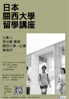 【公告】:【留學講座】10/29 日本關西大學留學講座-一起探索日本名校的魅力!