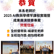 恭賀!本系老師於2025AI教與學標竿課程實踐暨成果展演競賽專案榮獲佳績!!