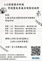 【公告】114-2 前瞻顯示科技競賽2026-02-12/在: 最新消息 /通過: 林宏勳內容: 2026前瞻顯示科技實踐暨成果展演競賽開跑囉 歡迎同學組隊報名!拿獎金!! 詳細活動報名網址: https://ann.cycu.edu.tw/aa/frontend/AnnItem.jsp?sn=66680 /wp-content/uploads/2023/01/logooneww.png 0 0 林宏勳 /wp-content/uploads/2023/01/logooneww.png 林宏勳2026-02-12 18:26:452026-02-12 18:26:45【公告】114-2 前瞻顯示科技競賽
