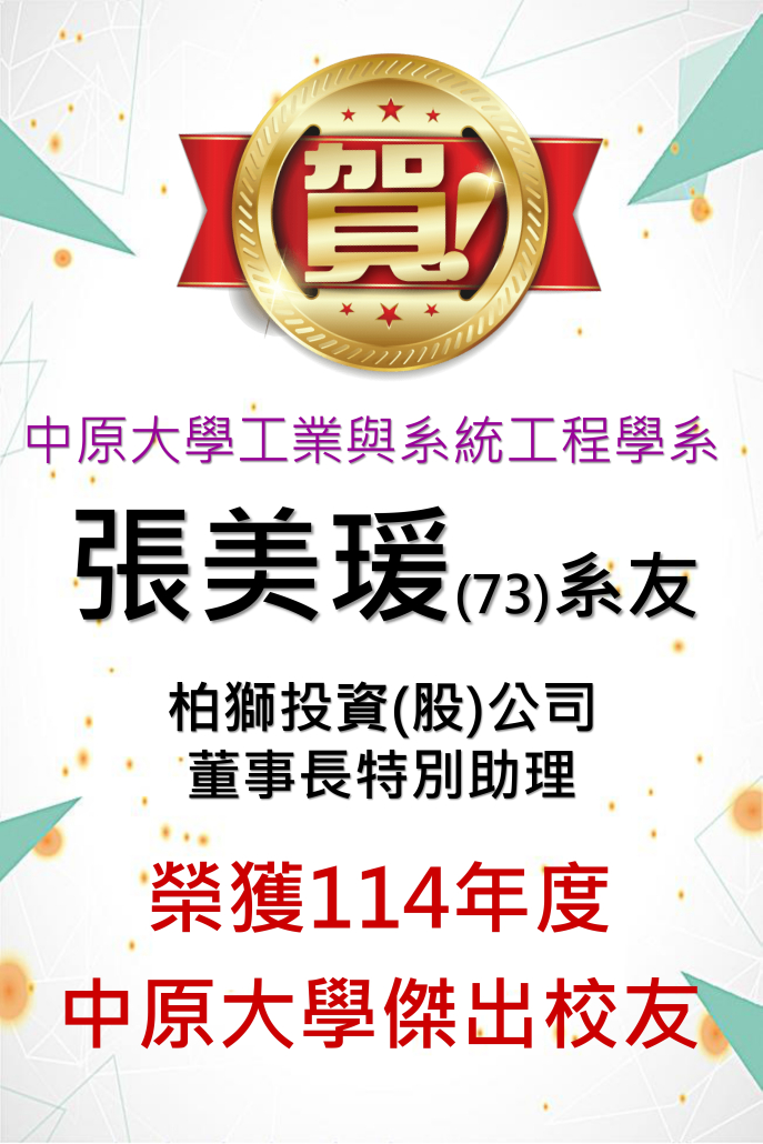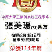 賀!張美瑗學姐榮獲114年度中原大學傑出校友