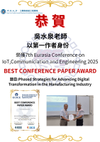 賀! 吳水泉老師 以第一作者身份 榮獲7th Eurasia Conference on IoT,Communiciation and Engineering 2025 BEST CONFERENCE PAPER AWARD!!