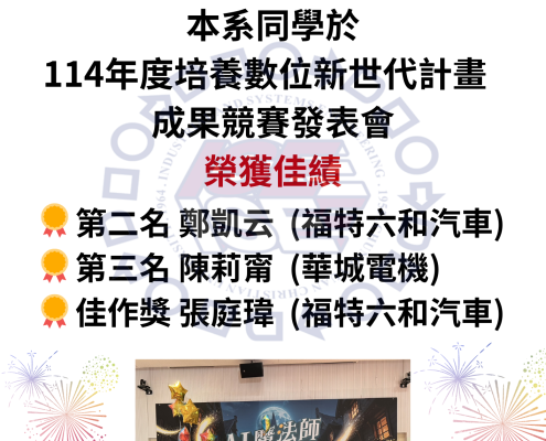 【公告】:恭賀! 本系同學於 114年度培養數位新世代計畫 成果競賽發表會 榮獲佳績!!