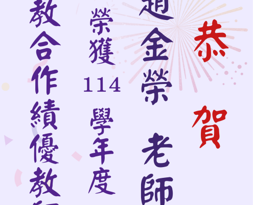 【公告】:恭賀! 王珮嘉 老師 榮獲114學年度 實施延攬及留住特殊優秀人才 彈性薪資【服務(含輔導)類】!!