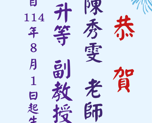 【公告】:恭賀!陳秀雯老師升等副教授!自114年8月1日起生效