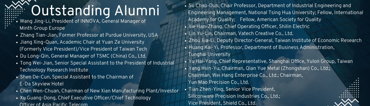 Established in 1964, this department was the second in the nation to establish an Industrial Engineering programme. It currently offers undergraduate, master’s, doctoral, part-time master’s (for working professionals), and international graduate programmes. In 2004, this department became the first Industrial Engineering programme in the country to achieve accreditation from the Institute of Engineering Education Taiwan (IEET), thereby aligning with international standards.